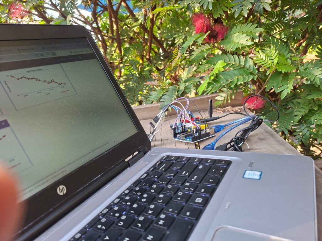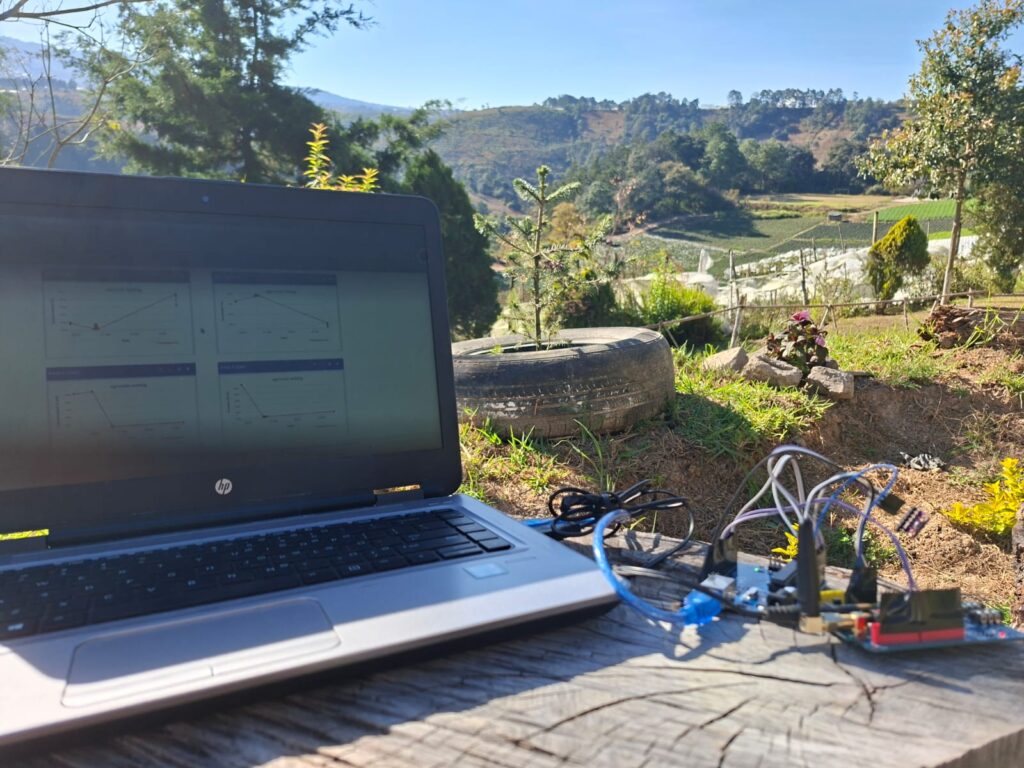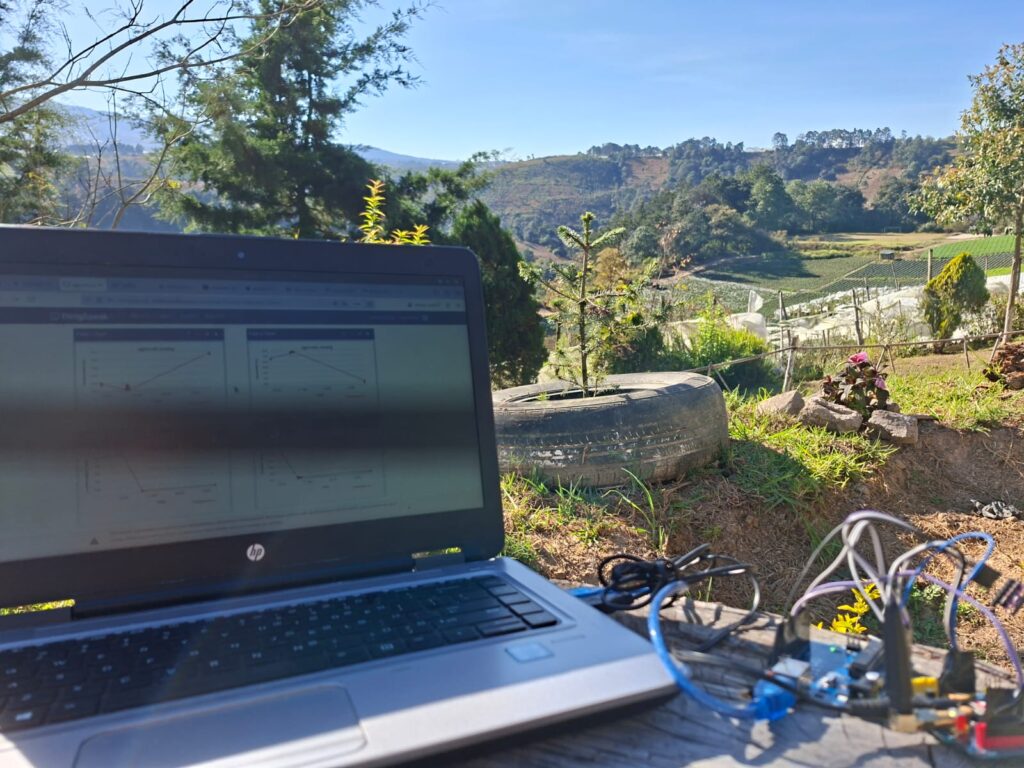 Monitoreo Autónomo (Hardware): Nuestras “Cajas Negras” capturan la Matriz 7D: Temperatura, Humedad, Presión, Altitud, CO2, pH y Luminosidad. Diseñadas para operar en áreas rurales con conectividad 5G y LTE.